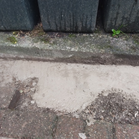 Done. Small amount of sand-and-cement mortar poured into spaces