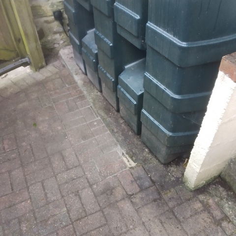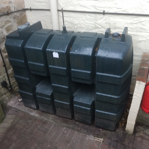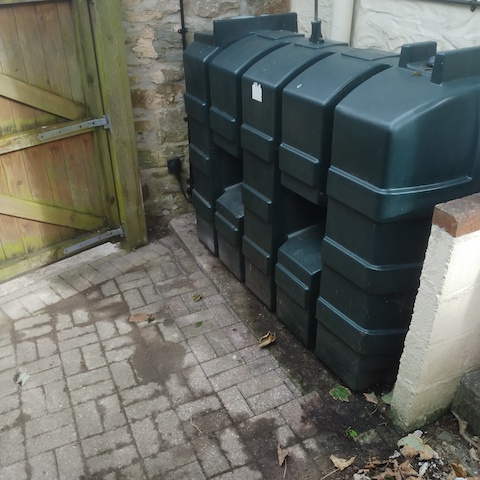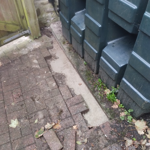 in page oil tank after lifting paving blocks and finding void under concrete raft supporting oil tank.