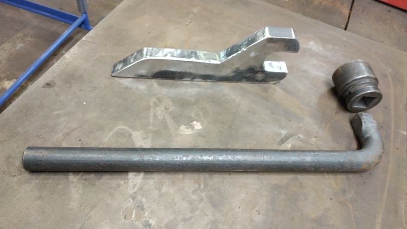 Slogging spanner and breaker-bar for less-usual bolt and nut size.