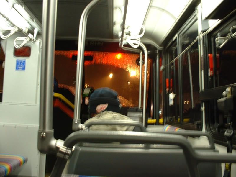 Riding home on the "community circulator" as the sleet / snow begins to fall heavily. Late November 2002. The image matches my perception even more, as I was warm from drinking a couple of pitchers of porter beer with a former colleague. Had ridden the #6 down Euclid to downtown, then the Rapid from Tower City to W117/Madison, then this final leg home right to my door.