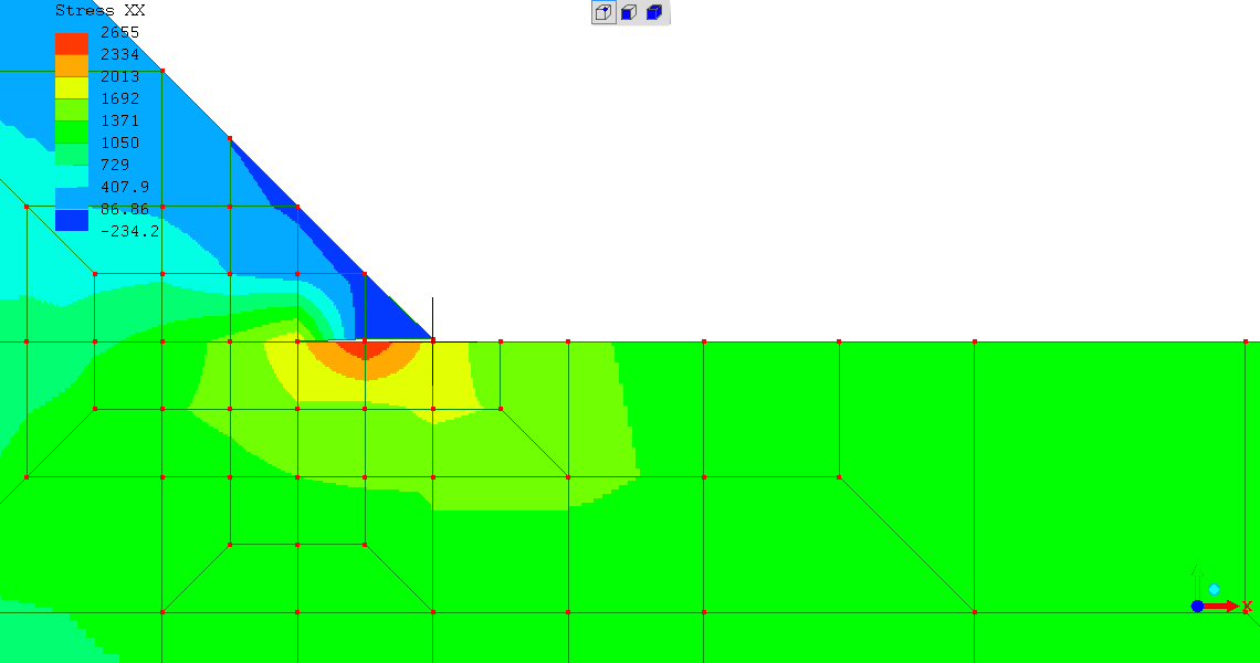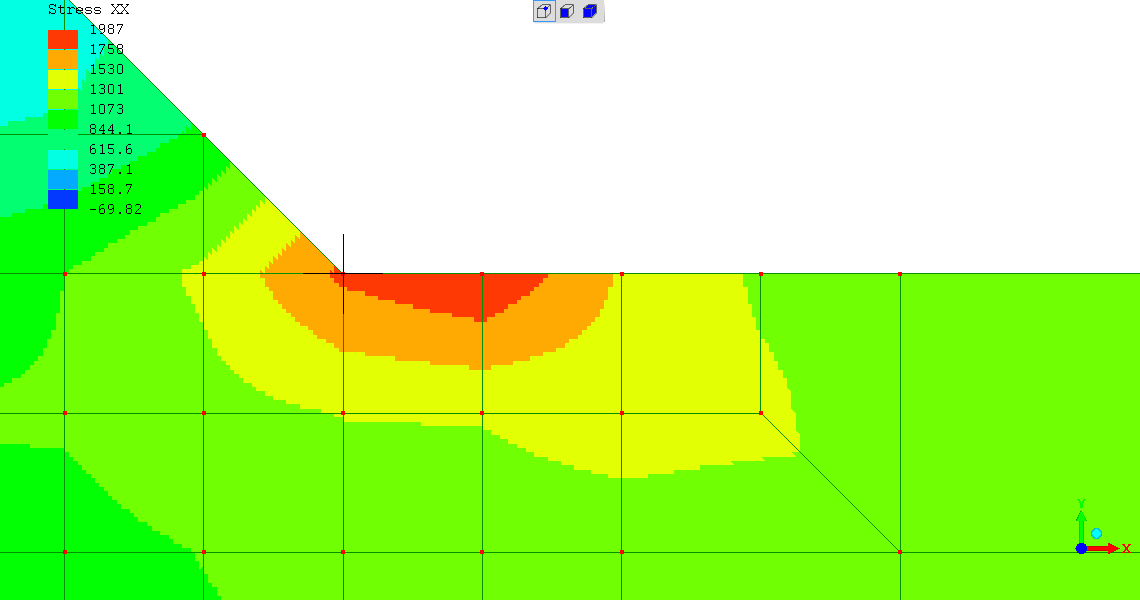 case; the highest stress intensity for the "Stress XX" case is 1.987X