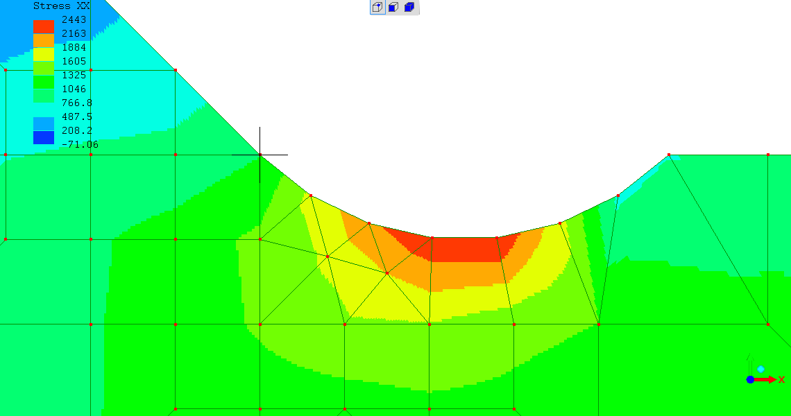 So far these simulations do not show a big reason why in real life welds with toe-groove can have very high fatigue-endurance several times higher than expected - whereas representative real welds with toe-intrusions have the reference familiar low fatigue-endurance.