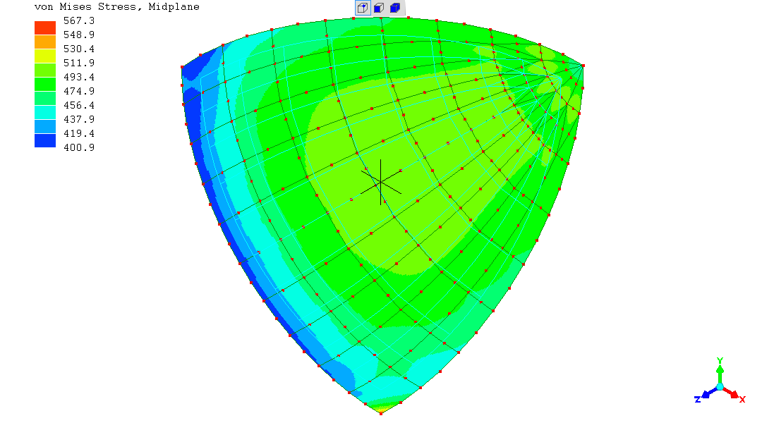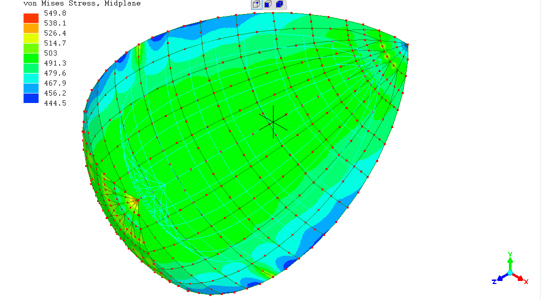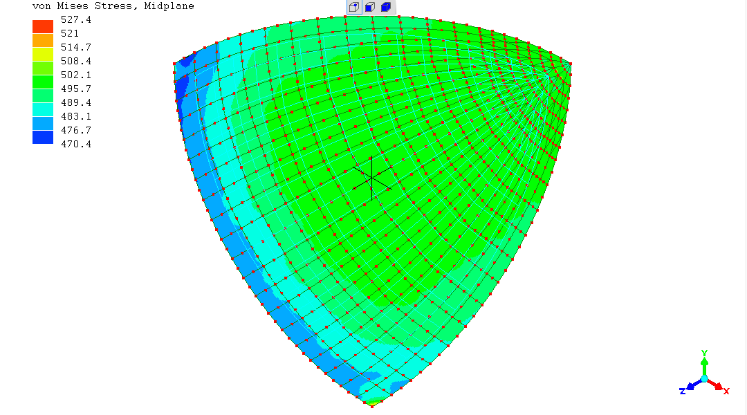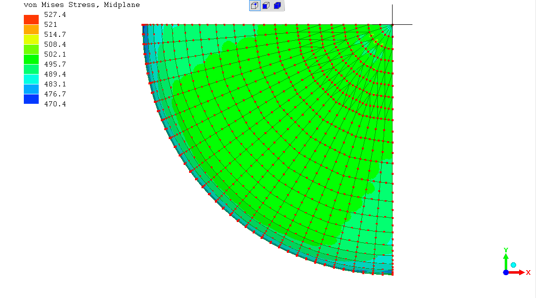 To make these results easy to evaluate, I've use the same pressure for this sphere simulation as for the cylinder simulations. That pressure produces an expected stress, known from mathematics.