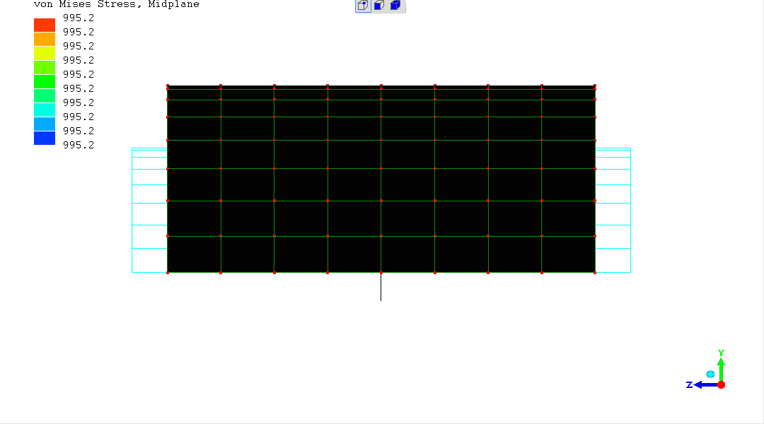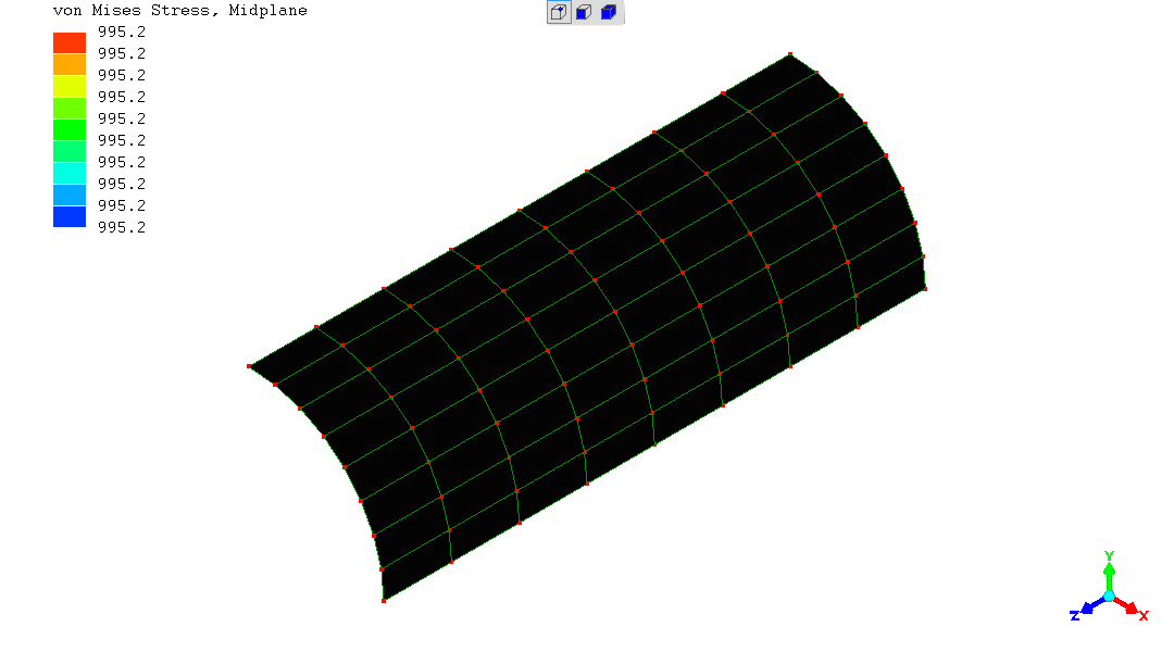 The overall stress is totally uniform and very close to 1000; the expected mathematical value.