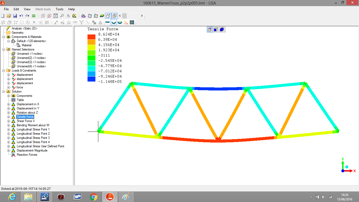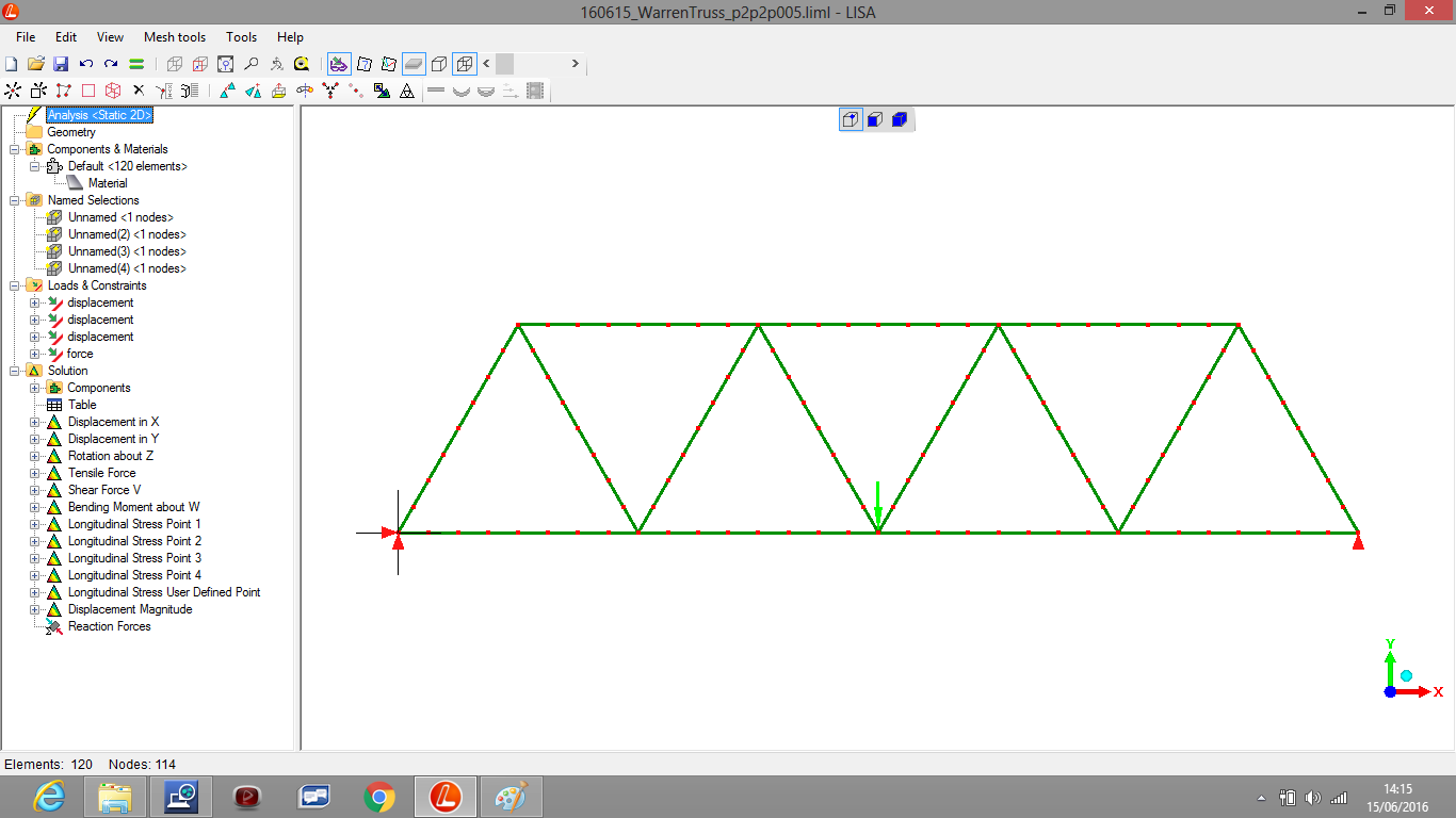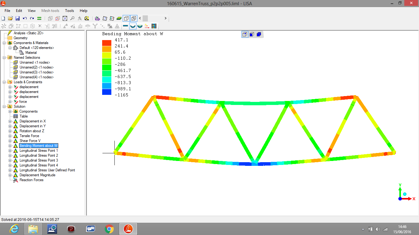 Note therefore that for similar as-displayed deflections, in reality the Vierendeel Truss is much more deflected than the Warren Truss.