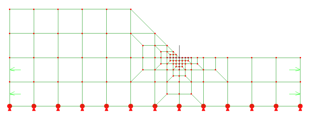 The toe-intrusion is modelled as a 0.5mm long sharp-tipped crack, intruding along the plane of the surface of the plate, at the weld toe.