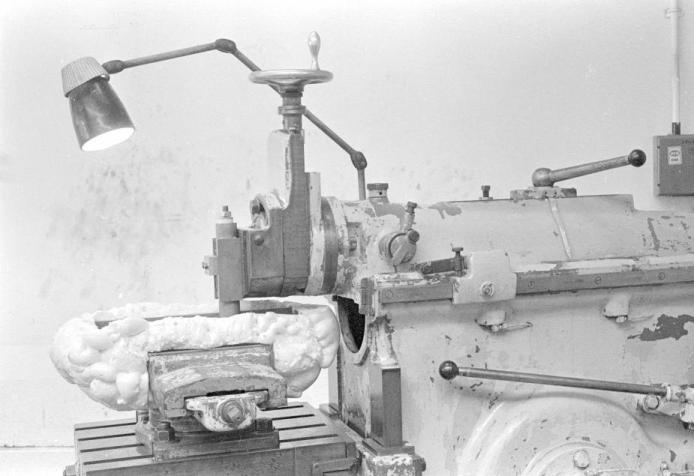 The tank on the machine's table and the toolbit holder in the toolpost - neither offers any metallic conduction path to the body of the machine. Both have polymer ("plastic") interposed between the them and the machine. With "plastic" having about a 200th of the conductivity of metal, you don't need much thickness of it to cut down heat flow from the machine into the tank to a tiny rate. The rig used only about a litre of liquid nitrogen every half an hour, even when machining.