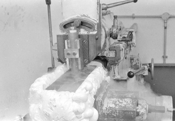 I therefore set about machining the samples away until the centre of the welds were exposed as new surfaces. When I was ready I quickly warmed the samples to room temperature, smeared them in glycerol so that escaping hydrogen showed itself as bubbling in the glycerol.