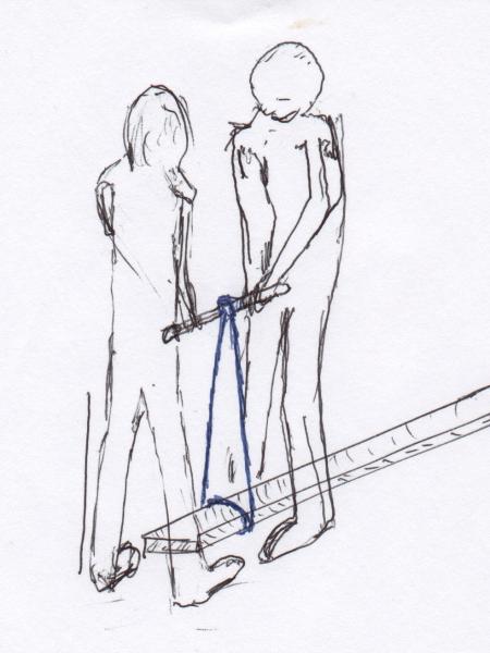 Innumerable uses of rope are small tasks aiding a manual lift. You transfer the position of lift to help the person. Or make it possible for more than one person to participate equally in the lift. Example sketch follows, where the rope transfers the manual lift to a steel tube handle.