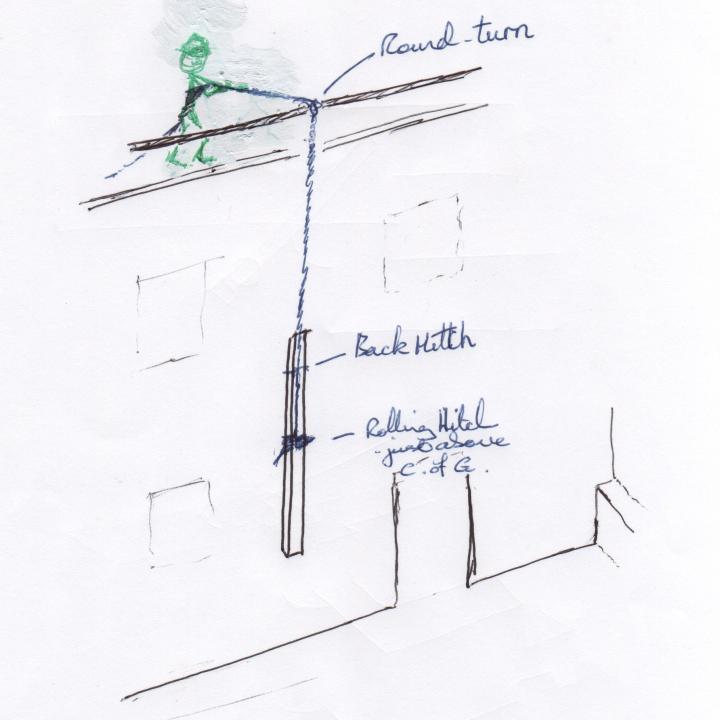 Some techniques using ropes out on construction sites are "headline" skills of the Trade. One of the most valuable is illustrated here.