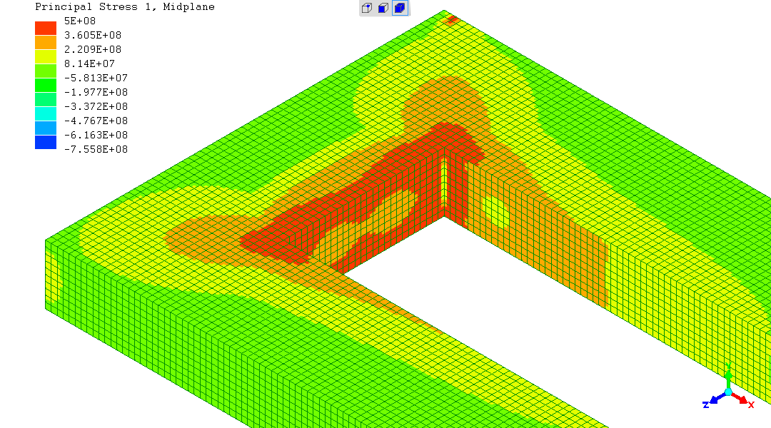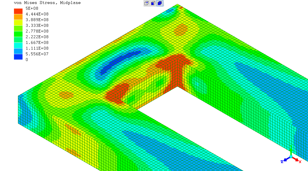 Behaviour of the U-frame when it is loaded beyond yield is of equally great interest. FEA qualitatively shows where the yielding will start; though as yielding progresses yielding will become more generalised and nothing is predicted about that progression.