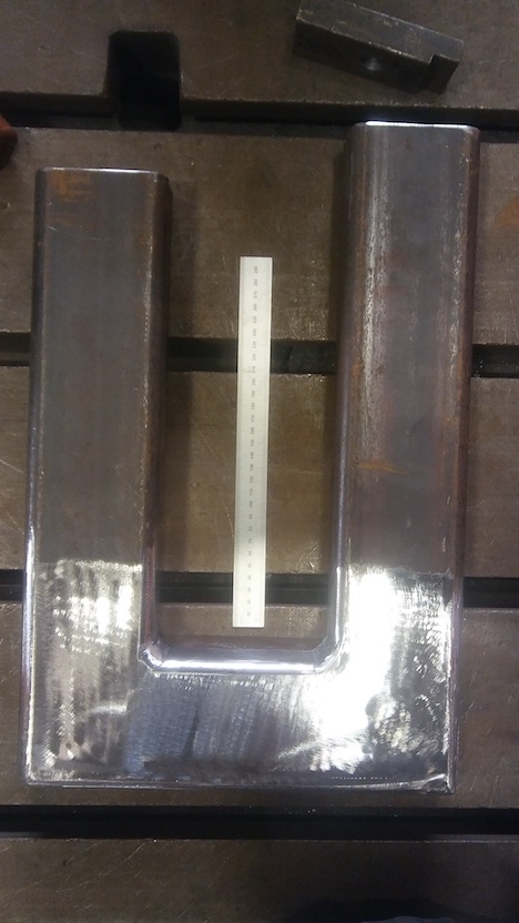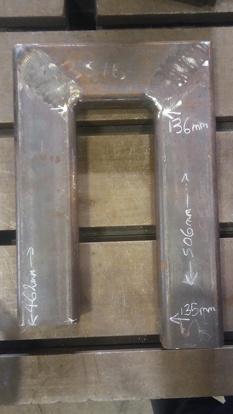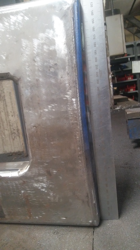 Made it - it's done! Dimensions chalked on. Only 1mm out-of-parallel on 450mm with a lot of stiff welding - which I could remove with a bit of flame-straightening if it mattered but doesn't