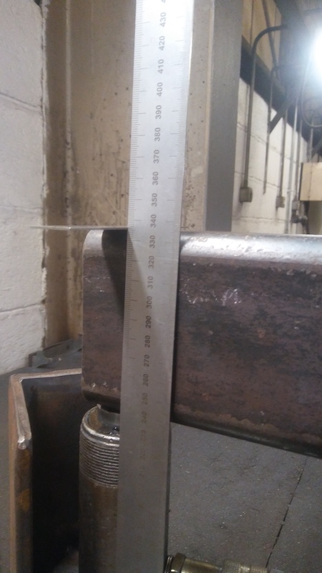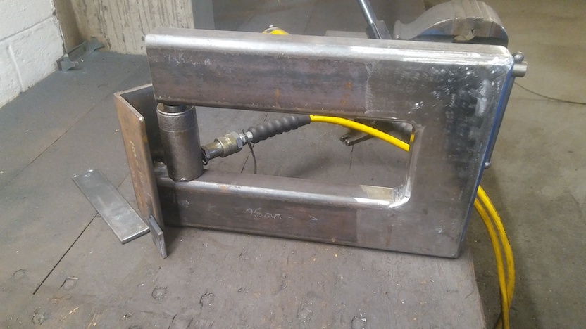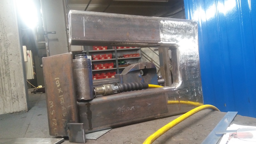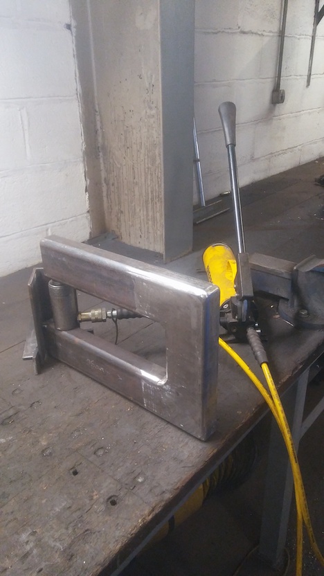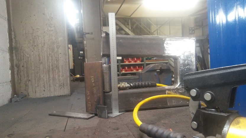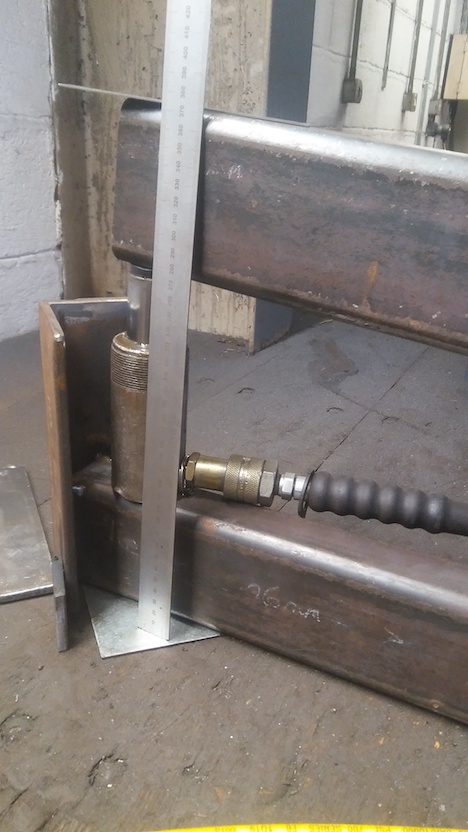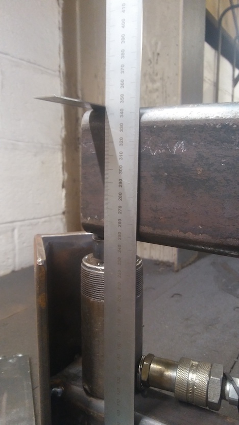 Beyond that "elastic maximum force", the U-frame will permanently deform. With the hydraulic cylinder between the "open" end of the "U", the previously parallel RHS's of the "U" which are about 450mm long are expected to take a divergent splay.