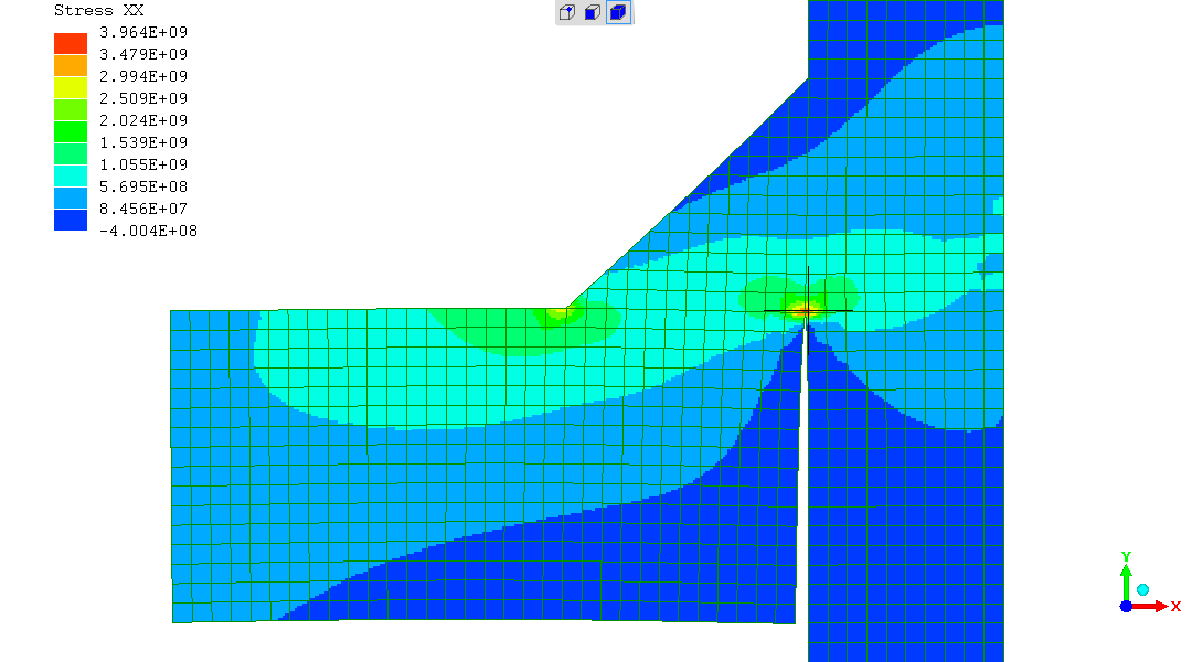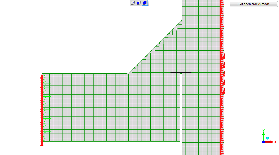 FEA "Open cracks mode" reveals the horizontal "plate", representing