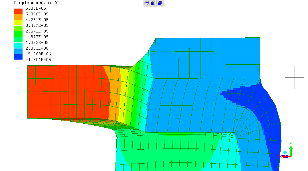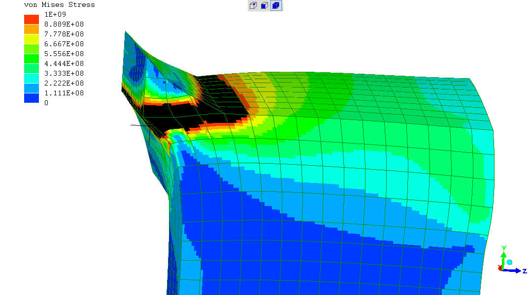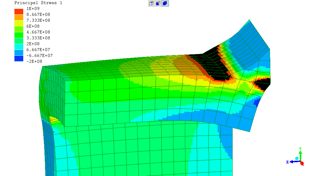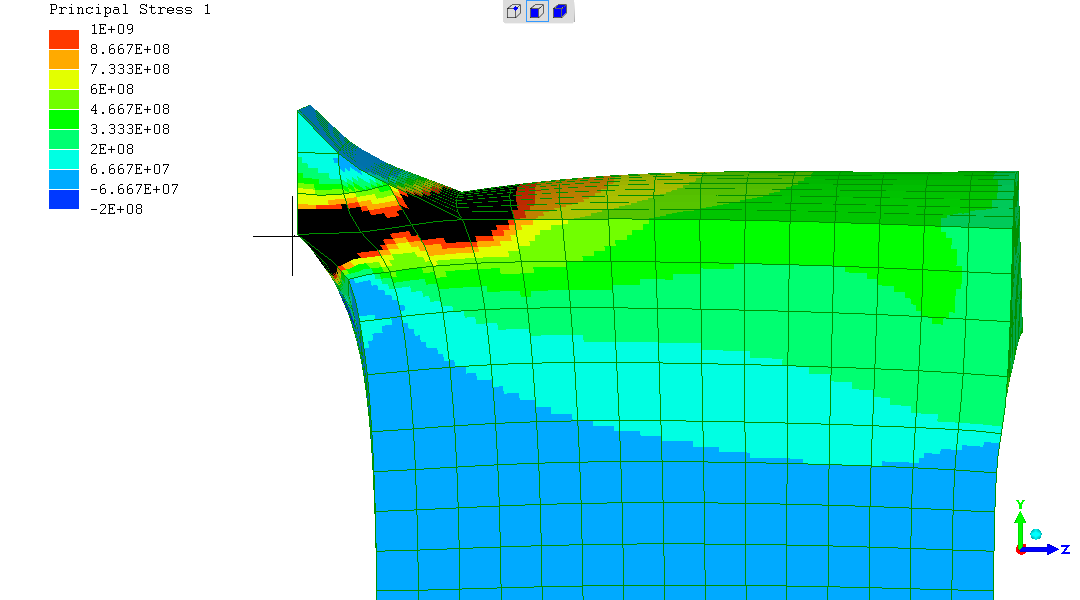 As with "PS1" - Black regions around plane where weld metal joins the top surface of the RHS is where stresses exceed 1GPa.