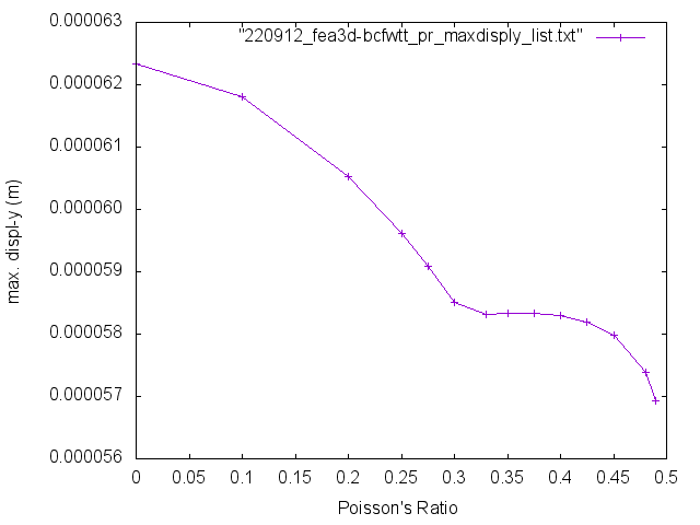 Remembering the material modelled has a constant Elastic Modulus of 210GPa - matching steel - but with Poisson's Ratios specified between 0.0 and 0.49