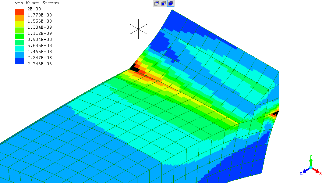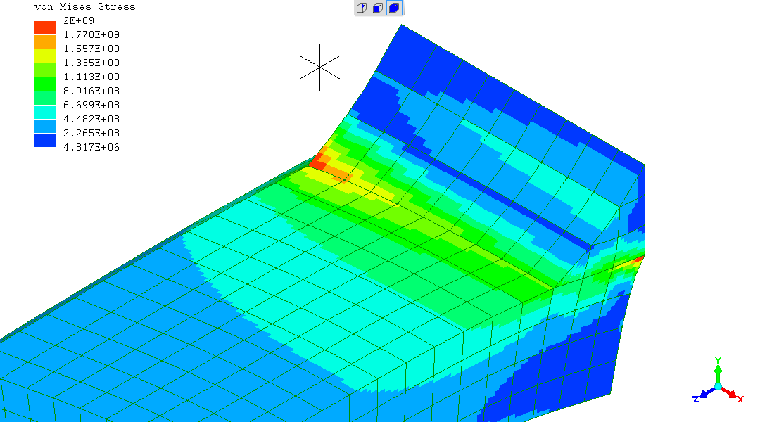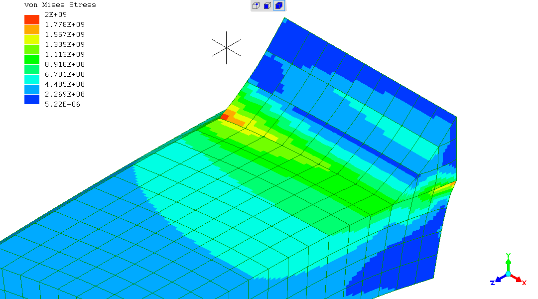 Note the stress displayed has a scale maximum of 2GPa. Any higher