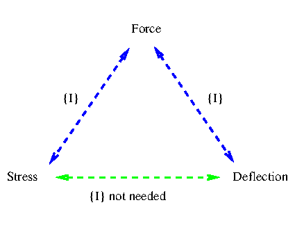 An engineer in North America knows and has used this practical crucial point that with a string and tape-measure you can obtain the stress in a beam - but did not know of the "direct calculation path" shown green in the above diagram. He used online beam calculators in sequence to go from deflection to force then force to stress - both needing I.