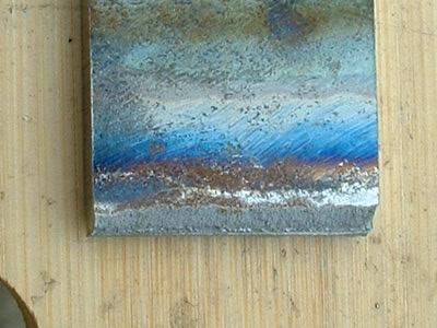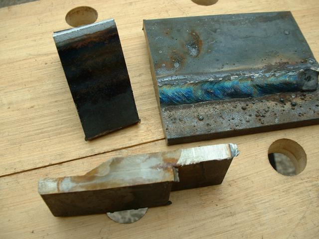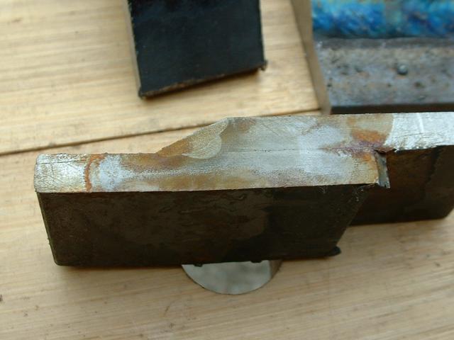 Even appeared to pass nick-break test (not shown here) when tried lap joint using as-received, scaled, bulging-edged, plate - that is, appeared to pass test when odds stacked against, implying pass on properly prep'ed plate is not "marginal".