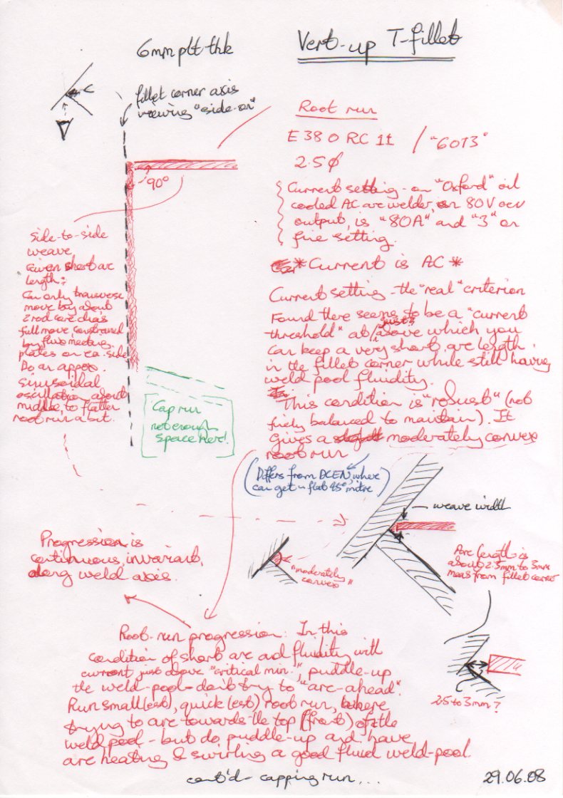 Additional "by-the-way" note - as for DC, the capping run is much easier when done with 2.5mm dia rods (as used for the root run). However, the natural fillet size is smaller, suiting a double-sided T-fillet on 6mm plate.