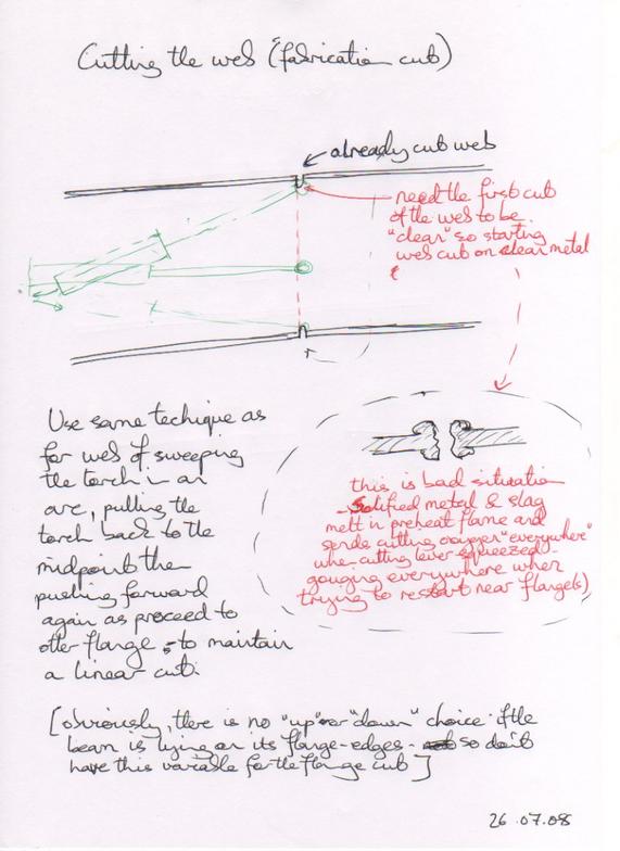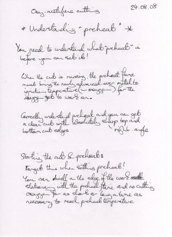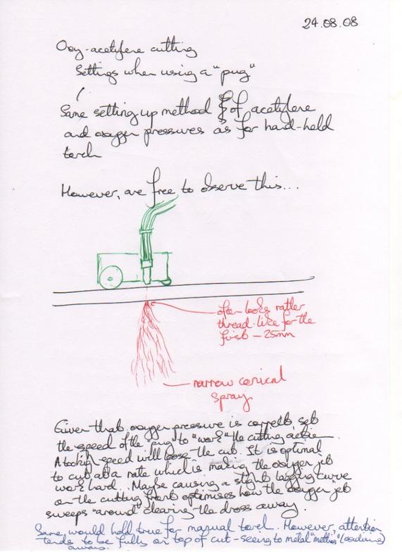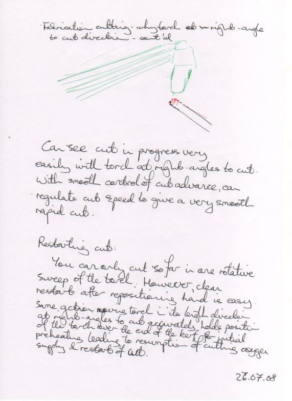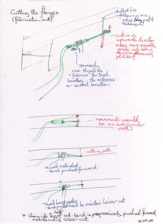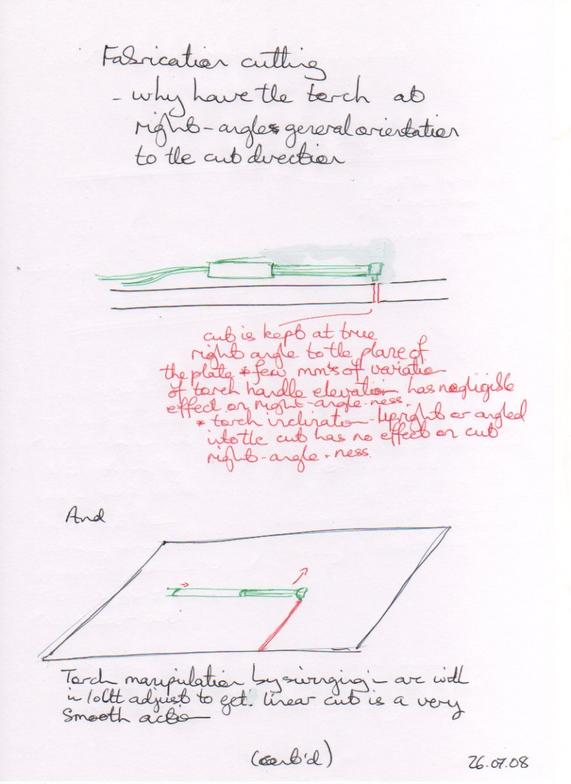 There is a characteristic way of holding the torch at about right-angles to the direction of the cut when doing an accurate cut. There are several reasons for this, shown here...