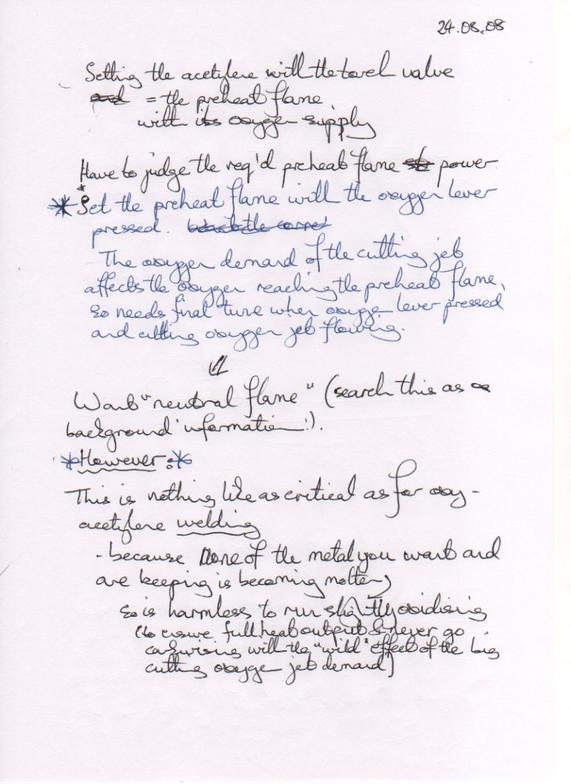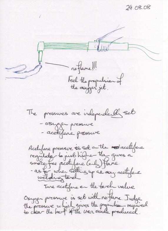 * In the above - this is setting the cutting jet, squeezing the oxygen lever while preheat oxygen valve (and acetylene valve) fully closed *